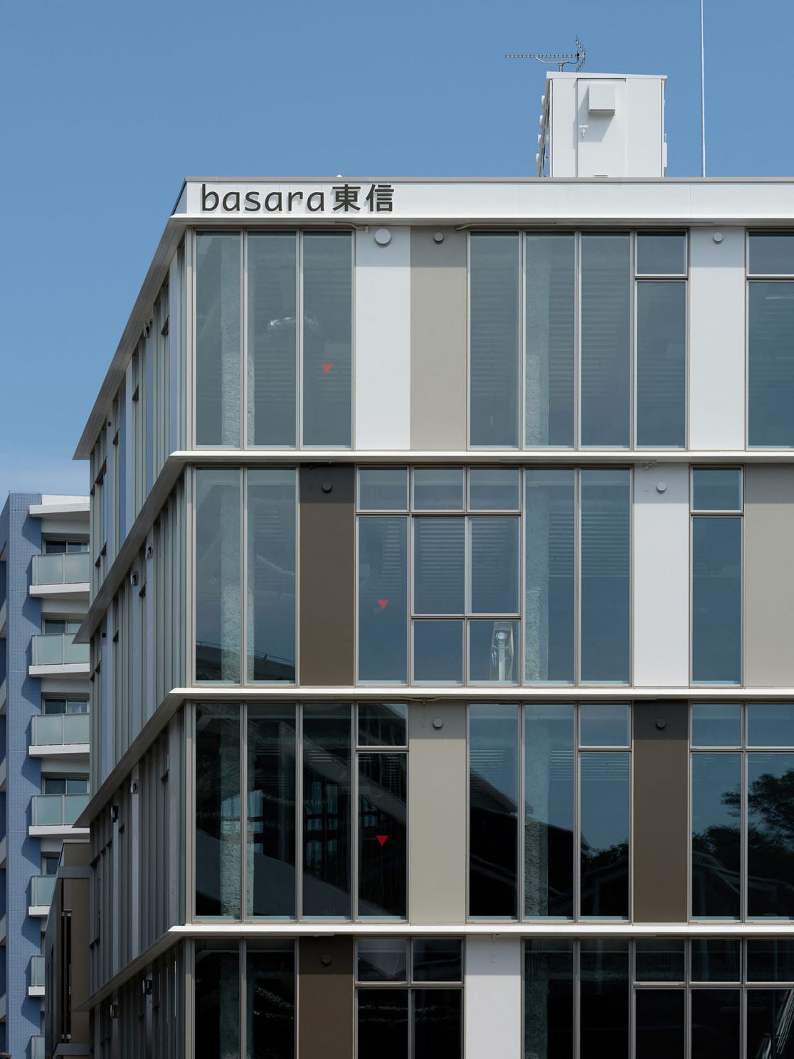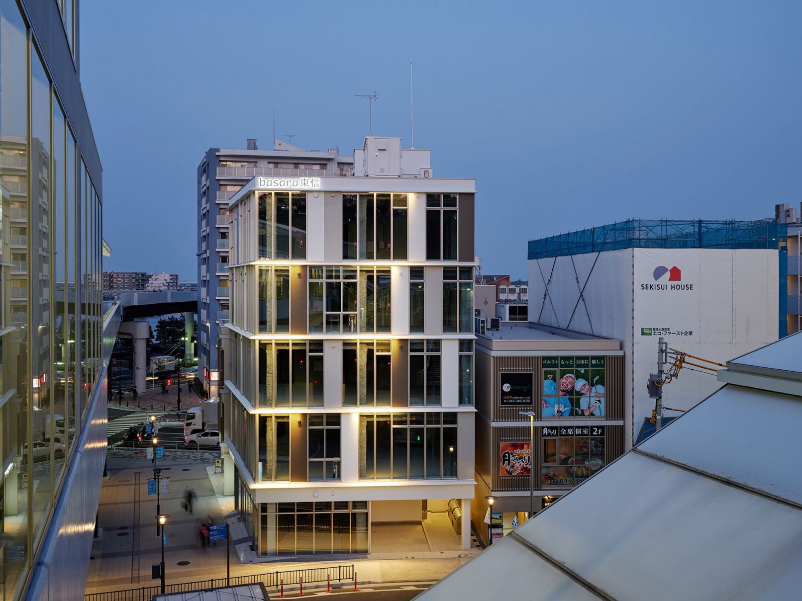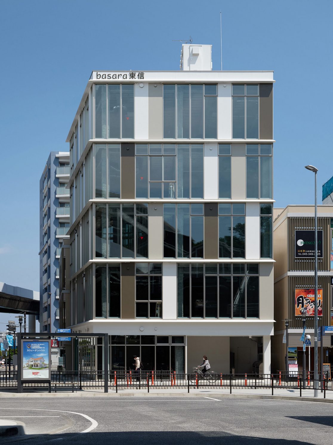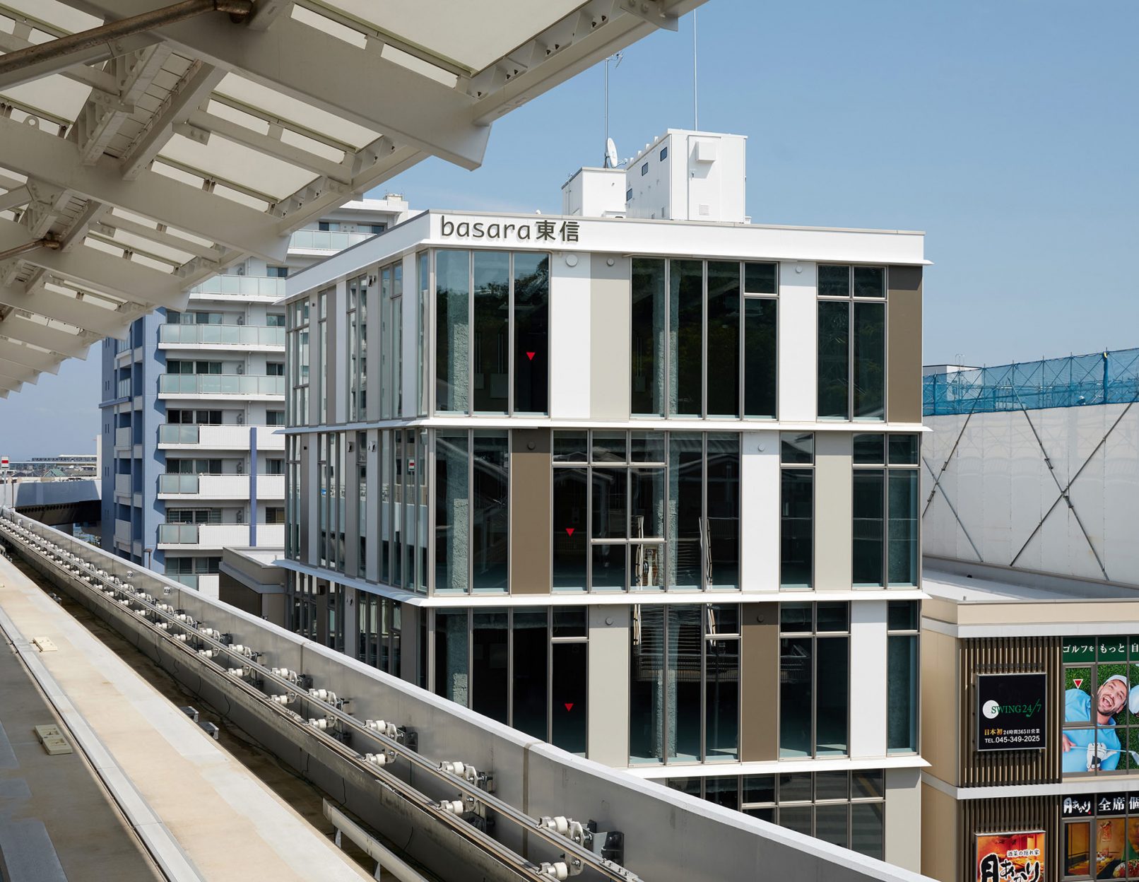 横浜市金沢区の金沢八景駅前に建つオフィス・飲食ビルです。駅前の再開発に伴う新たな区画割りが行われる中で計画が進められました。