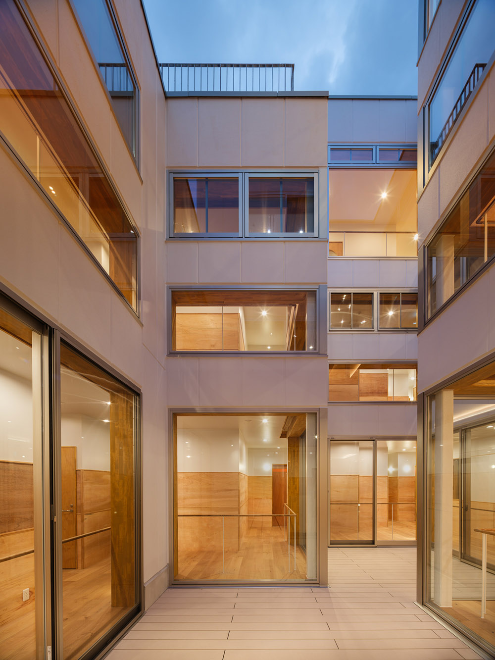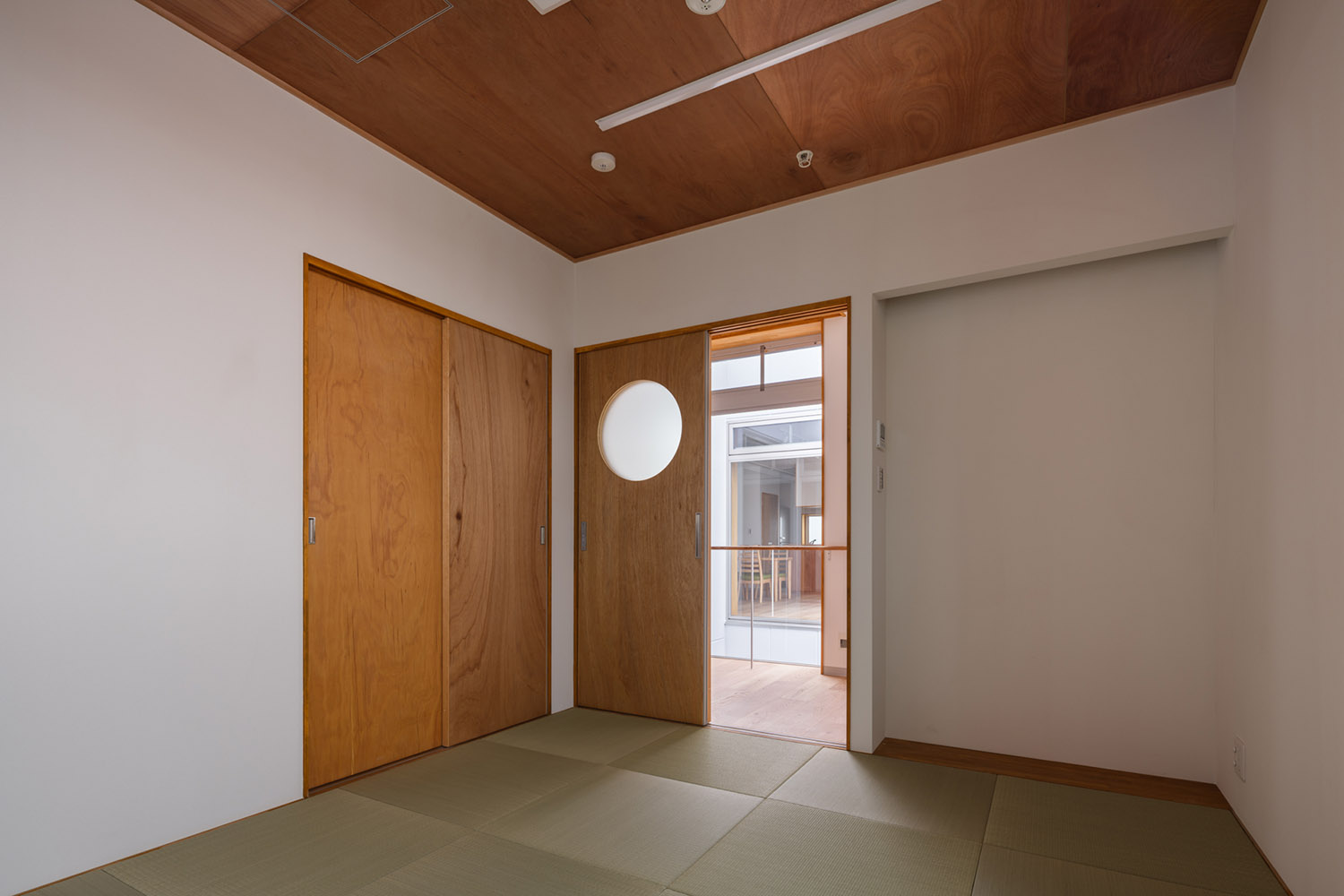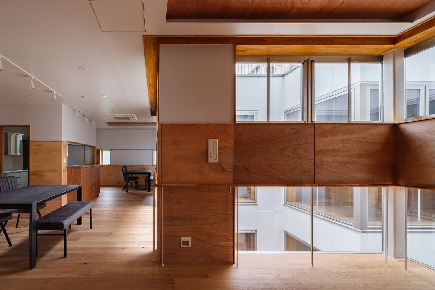Avoiding typical linear unit layouts, it adopts a staggered arrangement surrounding a central courtyard. Each room is uniquely designed, creating small spaces like gathering spots and “secret hideouts.” This fosters individualized spaces, fluid circulation paths, and a richly varied spatial depth mediated by the courtyard.